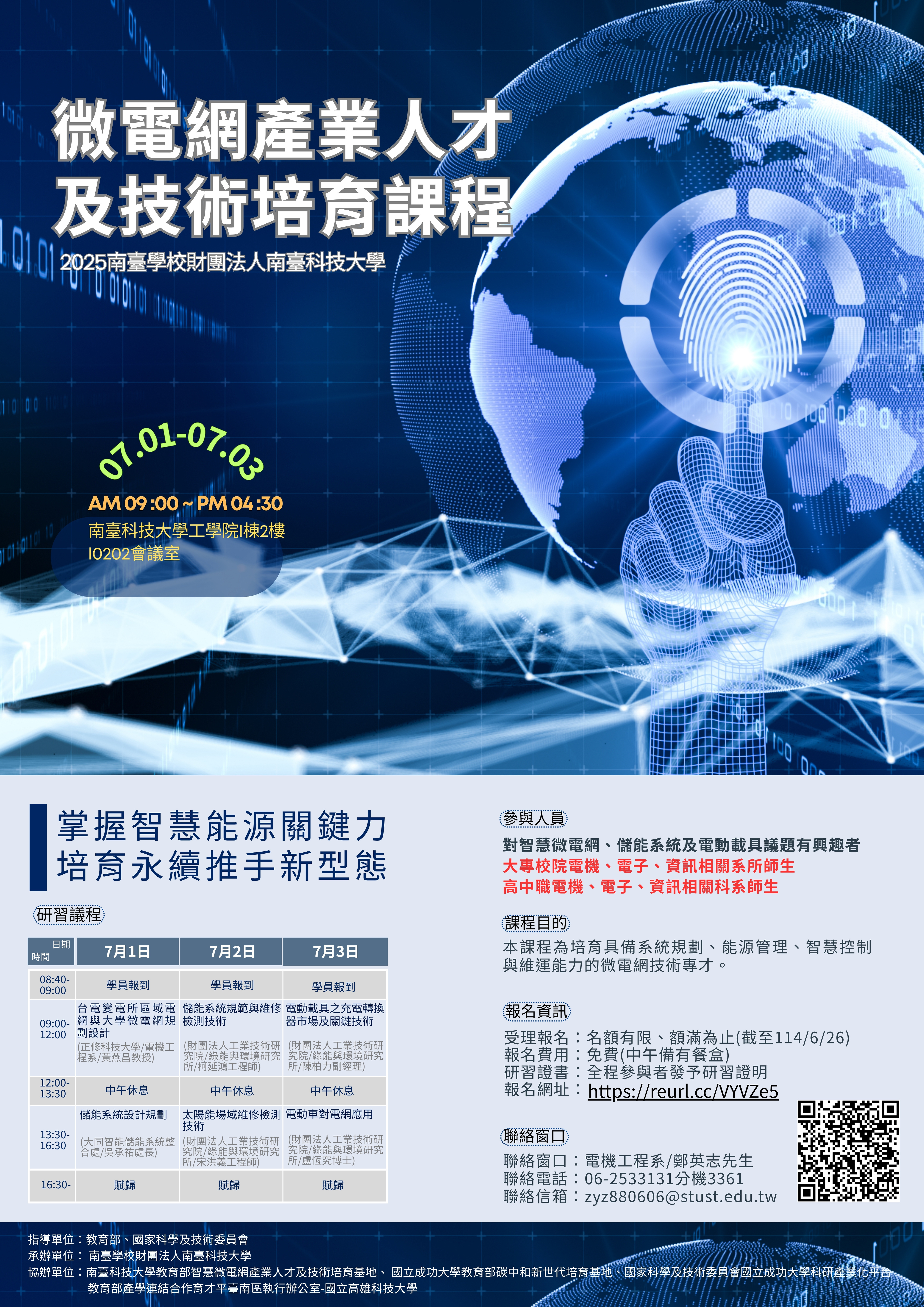 一、本課程透過教育部智慧微電網產業人才及技術培育基地培育具備系統規劃、能源管理、智慧控制與運維能力的微